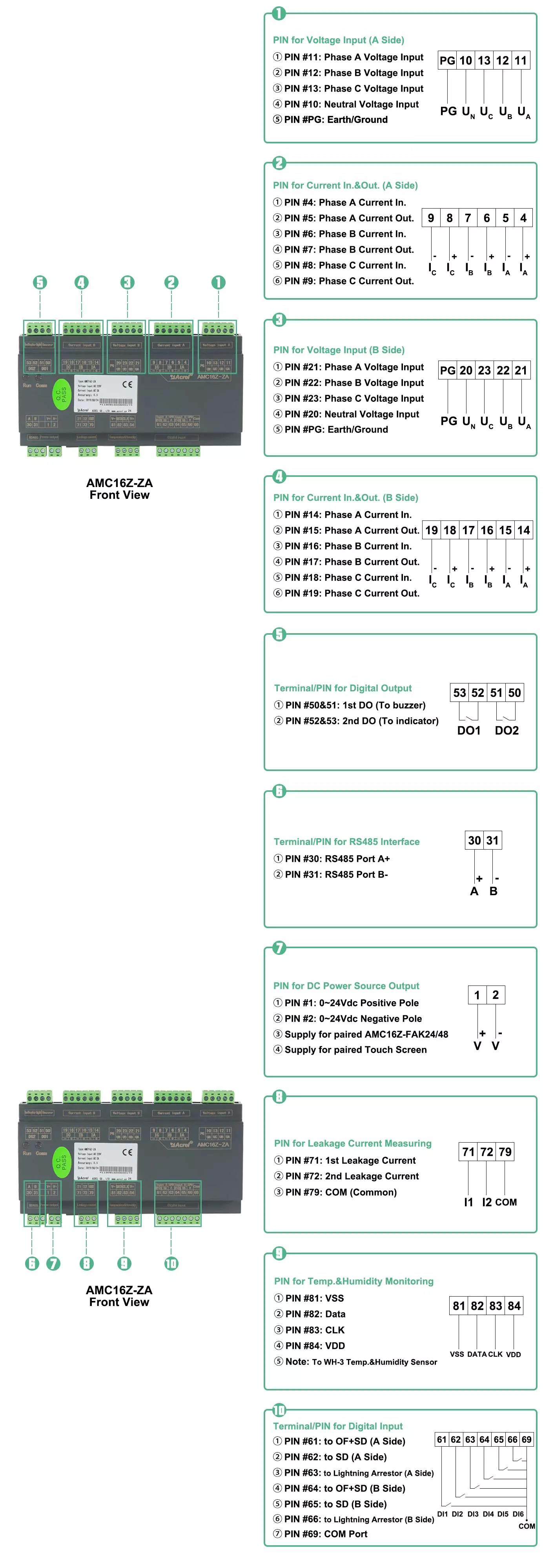 Three-phase AC kWh, kVarh, Active Power, Reactive Power, Current, Voltage, Power Factor, Apparant Power, Frequency, Zero ground voltage, neutral line current |